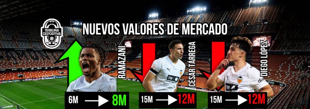 En la última actualización de Transfermarkt, hasta ocho jugadores del Valencia CF han perdido valor de mercado. Entre los más afectados están Diego López y César Tárrega, que han bajado 3 millones cada uno, mientras que otros como Diakhaby, Foulquier, Santamaría o Dani Raba también han visto caer su cotización debido a lesiones, menor protagonismo o bajo rendimiento.