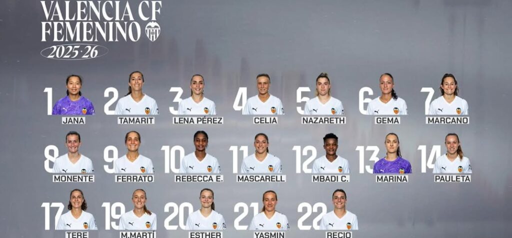 El Valencia Femenino presenta los dorsales para la presente temporada. Esta campaña jugarán en la segunda categoría del fútbol femenino, con el objetivo de volver de la manera más rápida posible a primera. 14 son las incorporaciones que ha hecho este mercado el Valencia, cambiando casi por completo a todas las jugadoras.