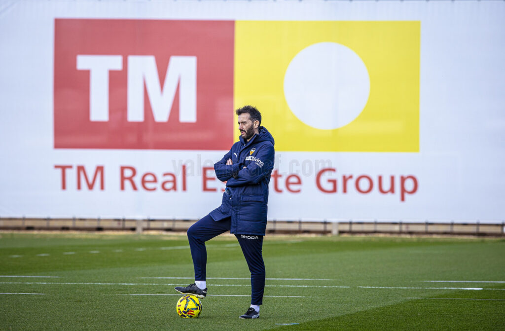 Carlos Corberán ha dirigido este sábado la última sesión de entrenamiento antes del duelo de este domingo ante el Real Betis (16:15 horas) en el estadio de La Cartuja. Como es habitual en la víspera del partido, el técnico de Cheste ha ensayado el once inicial que tiene en mente para un compromiso exigente.