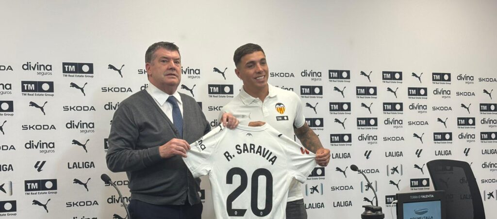 Renzo Saravia ha sido presentado como nuevo jugador del Valencia CF con la presencia de Ron Gourlay y Javier Solís. El lateral argentino, que llega libre para cubrir la baja por lesión de Foulquier, lucirá el dorsal 20 y se ha mostrado con ganas de demostrar en el césped que puede ampliar su contrato por más temporadas.
