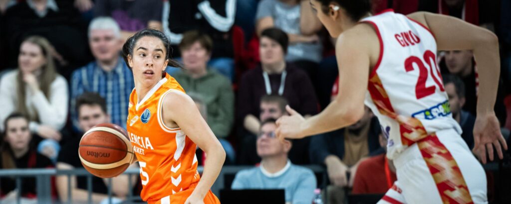 El equipo valenciano comenzó el encuentro con fuerza, con Leticia Romero, Elena Buenavida, Alina Iagupova, Raquel Carrera y Kayla Alexander en el quinteto inicial. Las taronjas arrancaron con un parcial de 0-9 gracias al dominio de Alexander en la pintura y la puntería exterior de Buenavida. La defensa presionante obligó al técnico local a detener el juego, pero Valencia siguió ampliando la brecha con un parcial de 0-10 que dejó el marcador del primer cuarto muy favorable.